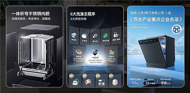真正的健康,也关乎人与环境的和谐。凭借对节水性能的技术优化,海信厨卫成功入围“山东省节水产业重点企业名录”。作为海信厨卫的明星产品,海信零菌洗碗机大薄荷系列C507iPro通过3D双卫星喷淋臂和四维喷淋系统,实现水流精准覆盖,高效利用每一滴水,真正做到节约用水与洁净生活的“双向奔赴”。