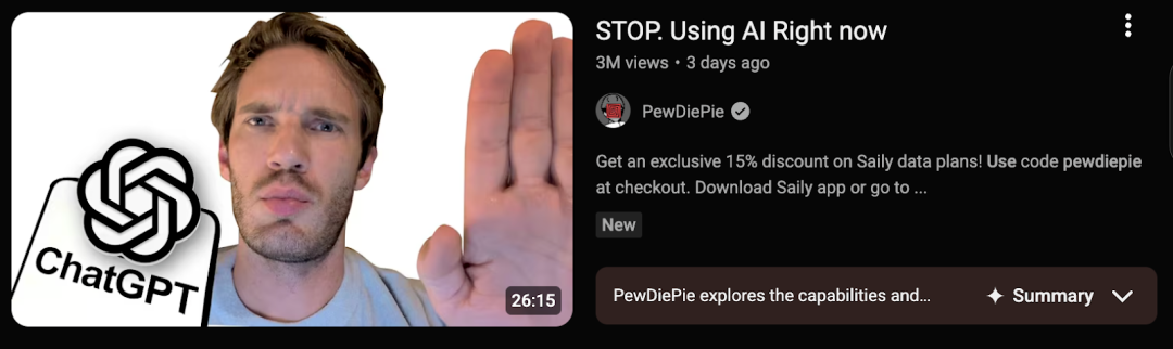 到底 PewDiePie 要停止使用怎样的最大主也 AI?又要开始使用怎样的 AI?